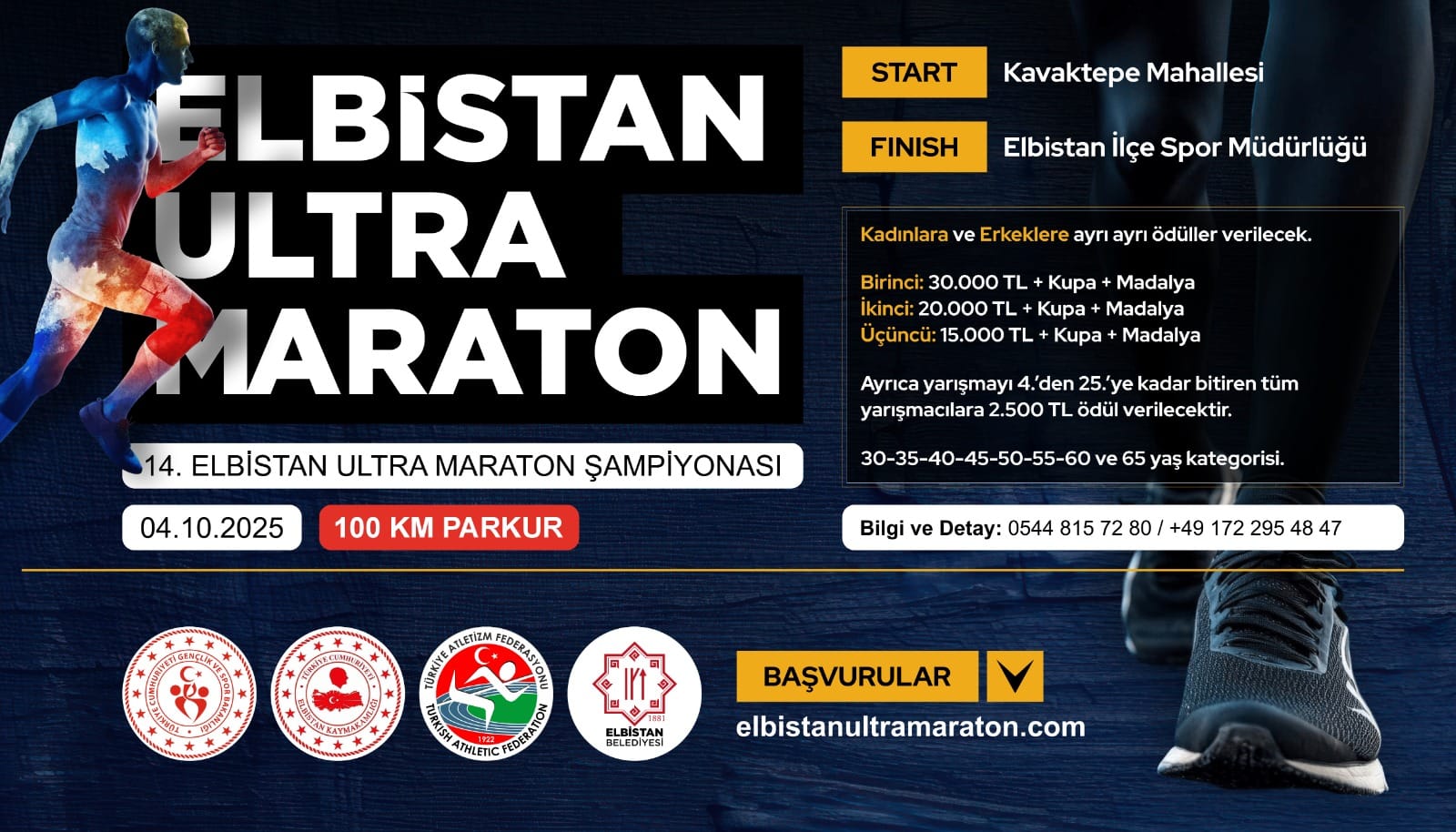 Elbistan, 4 Ekim 2025 Cumartesi günü ise 14. Elbistan Ultra Maraton Şampiyonası’na ev sahipliği yapacak. 100 kilometrelik zorlu parkur, Kavaktepe Mahallesi’nden başlayacak ve Elbistan İlçe Spor Müdürlüğü önünde tamamlanacak.