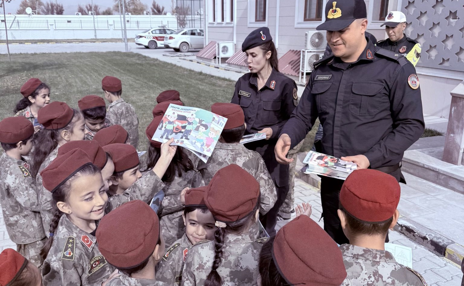 Asker kıyafetleri ile jandarmaya gösteri yapan minik öğrenciler büyük ilgi gördü.