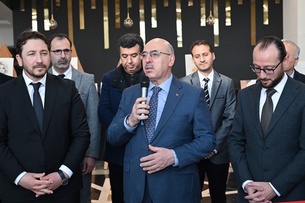 Açılış konuşmalarının ardından gerçekleştirilen kurdele kesimi sonrasında Rektör Prof. Dr. Mahmut Ak, protokol üyeleri ve sanatseverler sergi alanını gezerek eserler hakkında bilgi aldı.