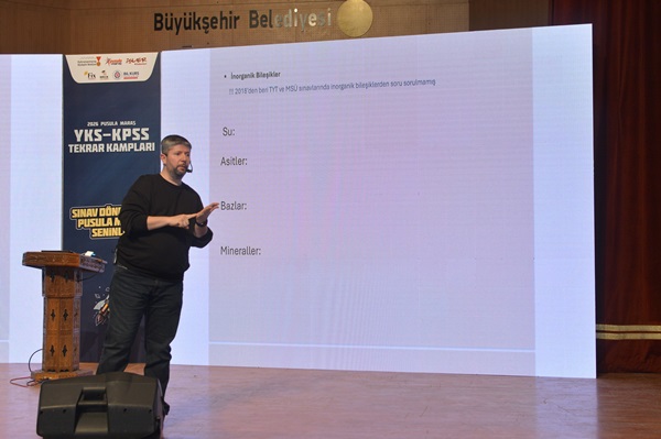 Büyükşehir Belediyesinin üniversite sınavlarına hazırlanan öğrenciler için düzenlediği YKS kampının dördüncü gününde öğrenciler Biyoloji dersinde önemli taktikler öğrendi. Uzman eğitmenler Ülkü Bakır ve Hüseyin Acar, zorlu sınav maratonu öncesinde öğrencilere birbirinden değerli taktikler anlattı.