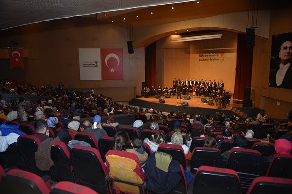 Büyükşehir Belediyesinin düzenlediği “Kahramanmaraş Türküleri” konserinde müzikseverlere unutulmaz bir gece yaşatıldı. Yoğun katılımın olduğu gecede sahne alan koro ve solistler, Kahramanmaraş başta olmak üzere Anadolu’nun farklı yörelerine ait birbirinden değerli Türk Halk Müziği eserlerini başarıyla seslendirdi.
