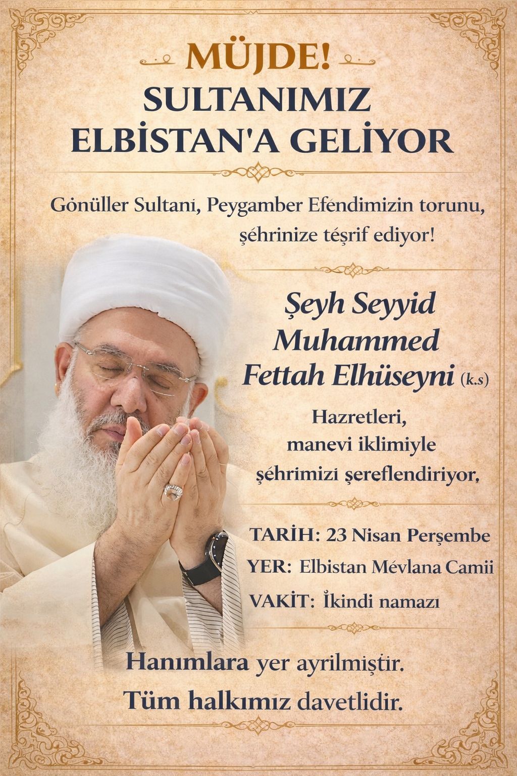 Sonsuzluk Kervanı Elbistan’da! Seyyid Muhammed Fettah El-Hüseyni Elbistan’a geliyor.